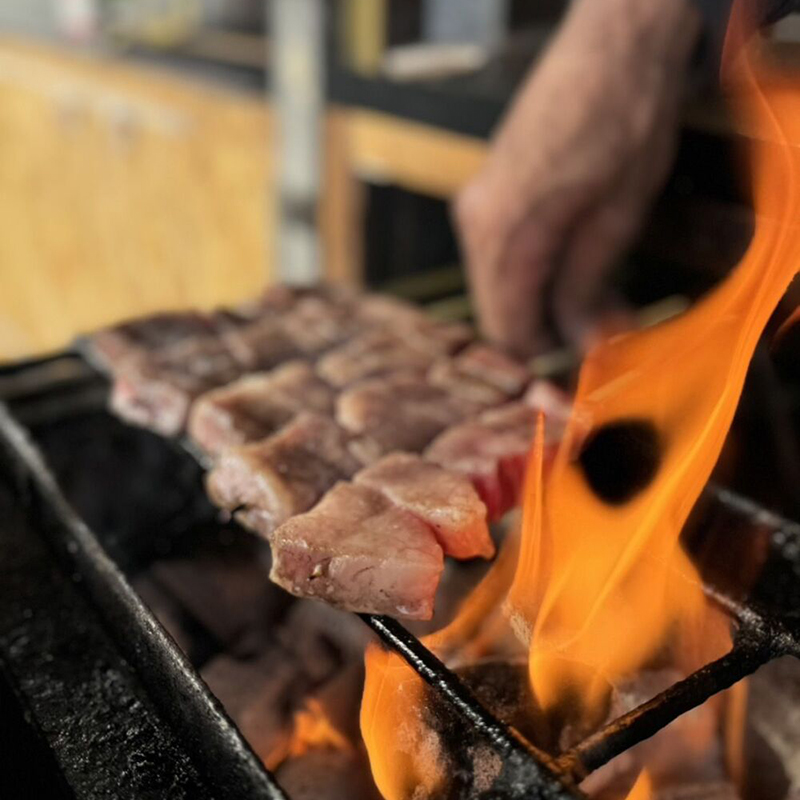 【 串焼き、ドリンク 】 信州に拘って活動しております。和牛の串を炭火で焼き、信州味噌󠄀だれor安曇野わさびで味わって頂けます。