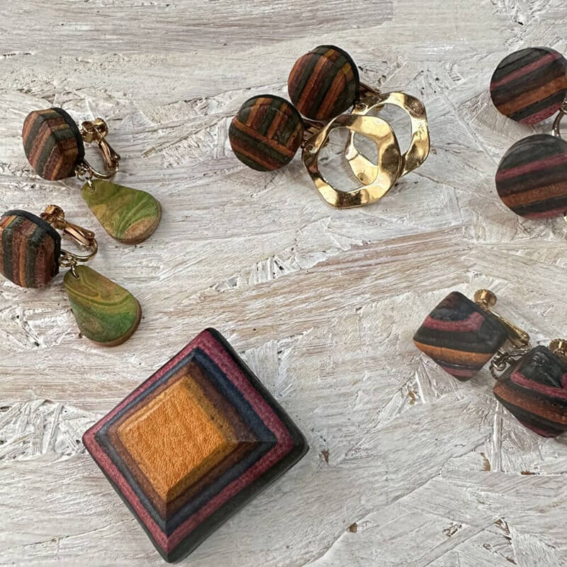 端革を組み合わせてひとつひとつ手作業・手縫いでオンリーワンになるようなデザイン。あとひと手間加えることでこんなのがあれば日常使いがもっとしやすい革カバンや革小物になる!そんな形を日々イメージしながら製作しております。製作時も廃棄してしまう革をなるべく減らすようにし小さくなった革もピアスやイヤリングなどのアクセサリーとして形にしてます。ひとつひとつ違う顔を持つ革アイテムを見つけて欲しいです。