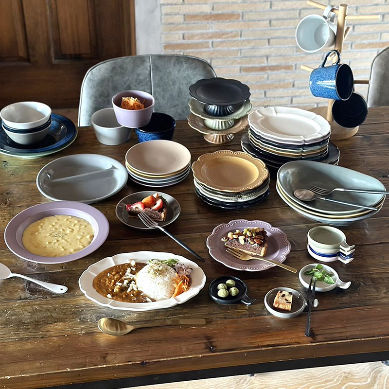 毎日使えて、重なりもよく使いやすい形状のデザイン。カラーバリエーション豊富なカフェ風のおしゃれな食器達です。普段はネット販売中心なのでぜひこの機会にお手にとってご覧ますと幸いです。イベント限定出品の食器もございますので自分好みの食器を見つけてみてください。