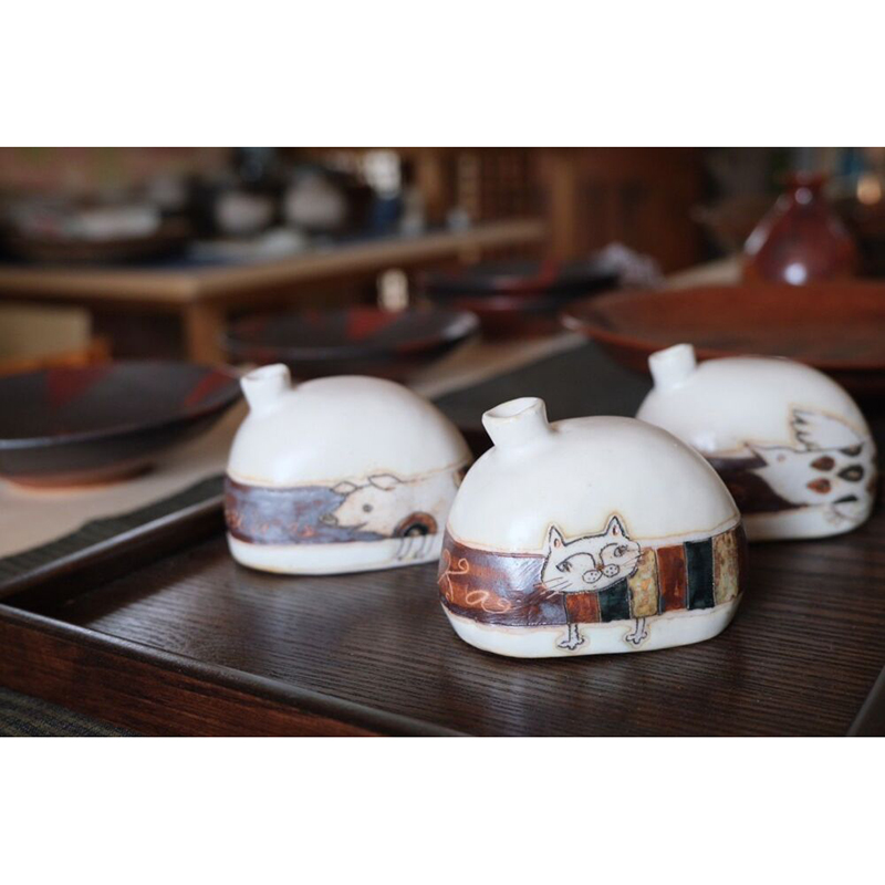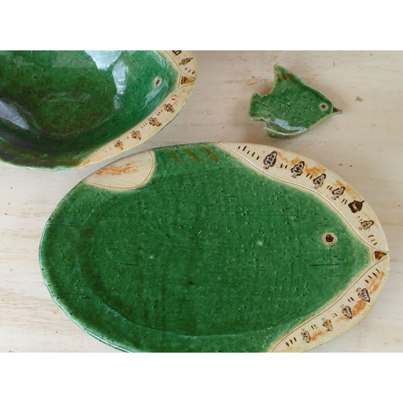 普通の食器と楽しい陶器作品。ちょっとだけ木の枝で作った動物があります。イロイロあって楽しめます。