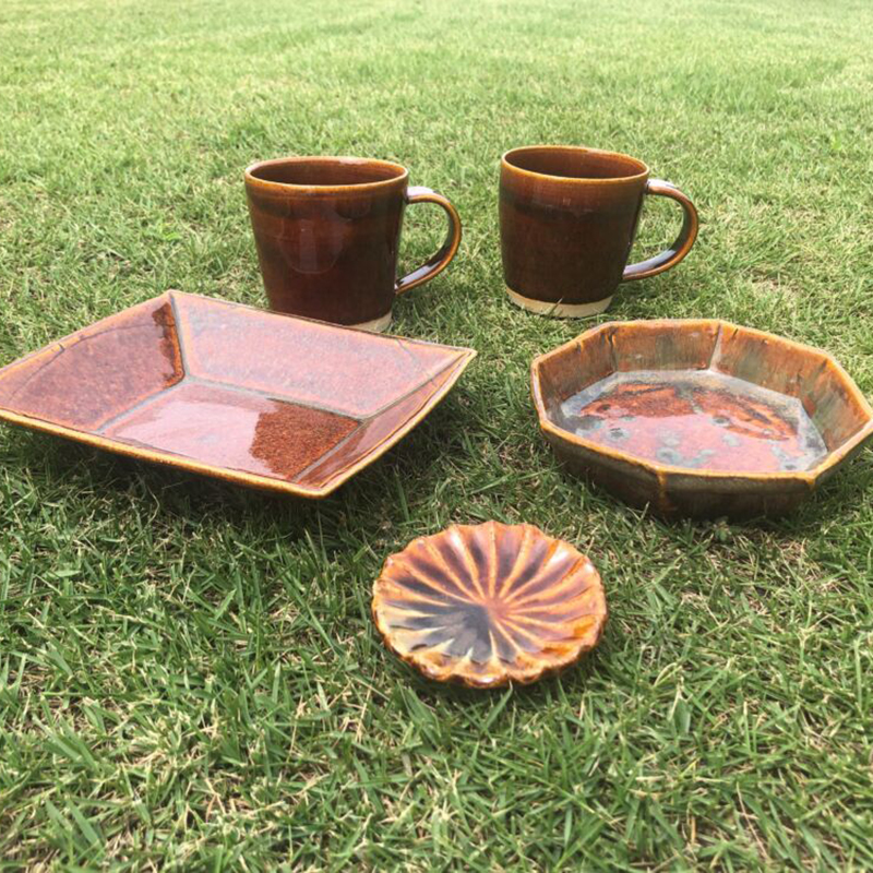 古い南フランスの明るい茶系の陶器イメージした作品を中心に、普段使いしたくなるような温かみのある食器や、おうちカフェで使いたくなるような特別感のある食器まで幅広く作っています。また、動物がモチーフの、目に入るとついつい頬が緩んでしまう様な雑貨も製作しています。ぜひ手に取ってご覧ください。