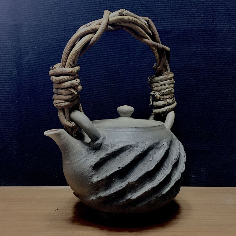 使いやすくて飽きのこない急須です。ボディーに刻んだ装飾が特徴です。