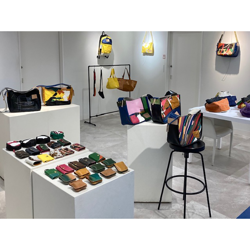美しい製品を作ったあとに出る端革や裁ち落とし、そもそも一般的に製品製造では品質をクリアできない革を使い、唯一無二の革製品を作って販売しています。