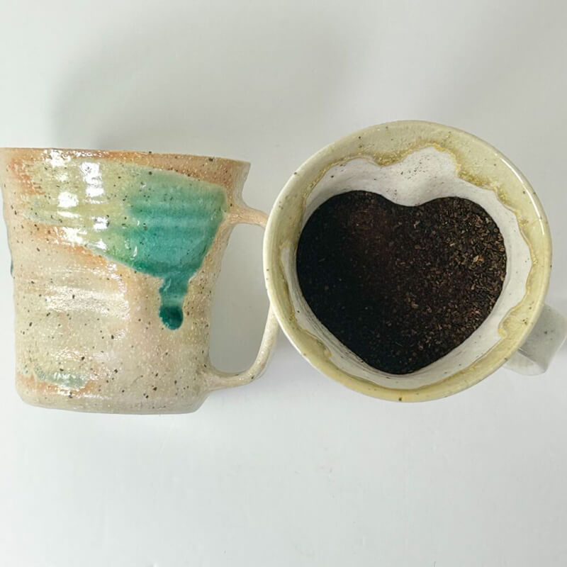 普段使いとして何度も食卓に上がるよう、白土をつかい釉薬を重ね、素朴ながらも温もりのある器を心掛けています。優しい風合いでお料理が一層美味しくいただける、そんな器で食卓を飾ってほしいと思っています。ドリンクを入れるとハートが現れるマグカップは、誰もが笑顔になってほしいと思い作っています。大切な方へのサプライズプレゼントにもおすすめです。また、多肉植物のエケベリア系には、カワイイ、アガベ系にはカッコいい植木鉢を作っています。自慢の植物をもっと「素敵だよ」と自慢してほしいです。