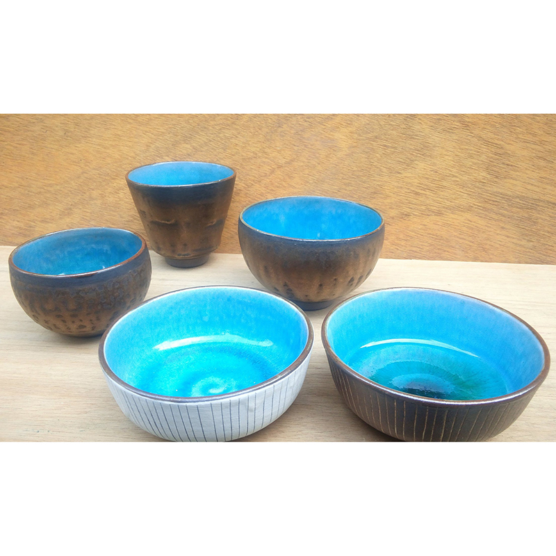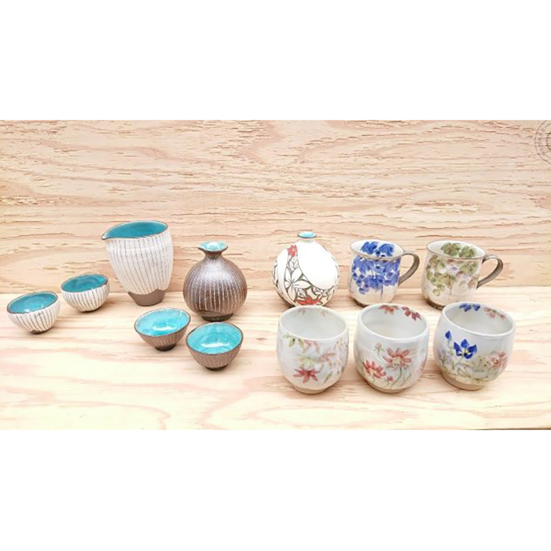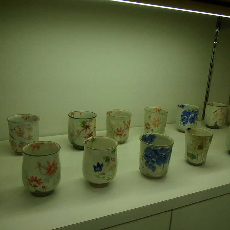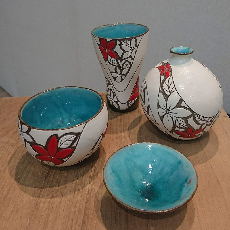 手作りの手描きの京都の清水焼です。季節の草花を参考に下絵付にて描いた食器と透明感のある碧釉の器を出店いたします。