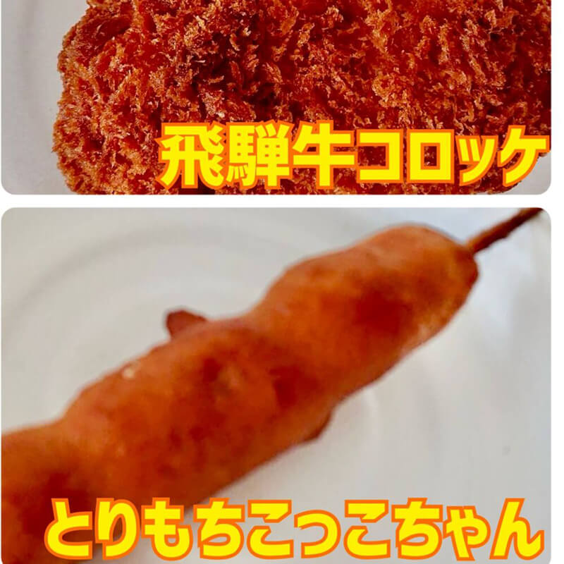 【 焼きそば・五平餅・みたらし団子・明宝フランク・串カツ・唐揚げ・とり餅コッコちゃん・串焼き・オムそば・ペットボトル 】 ネットで幻、伝説と言われたとり餅コッコちゃんをぜひ!!