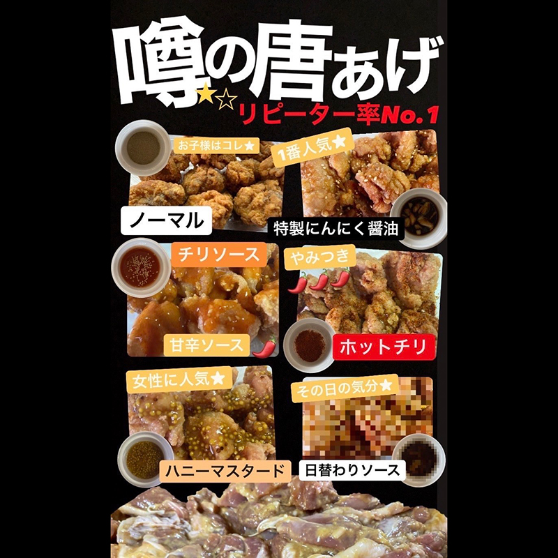 【 噂の唐揚げ・瑞浪のボーノポーク焼きそば・ドリンク・ミックスあめ 】 お子様から大人まで楽しめる6種のトッピングソース付き唐揚げ。地元瑞浪ボーノポークを使用した焼きそばです。是非一度ご賞味ください。