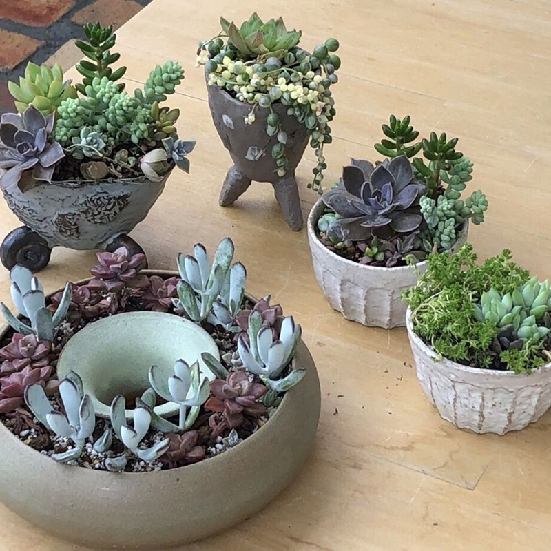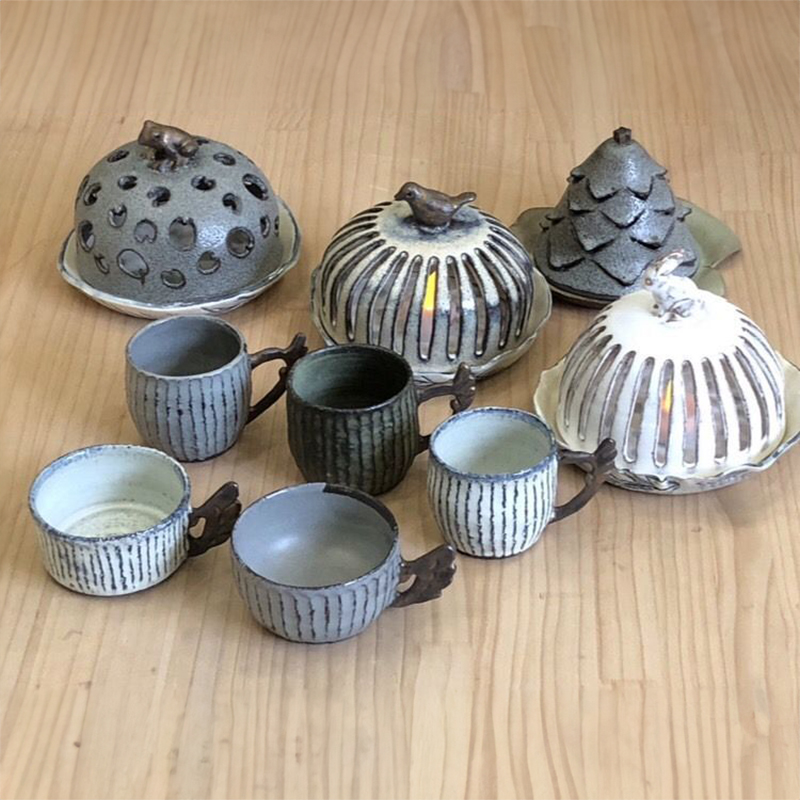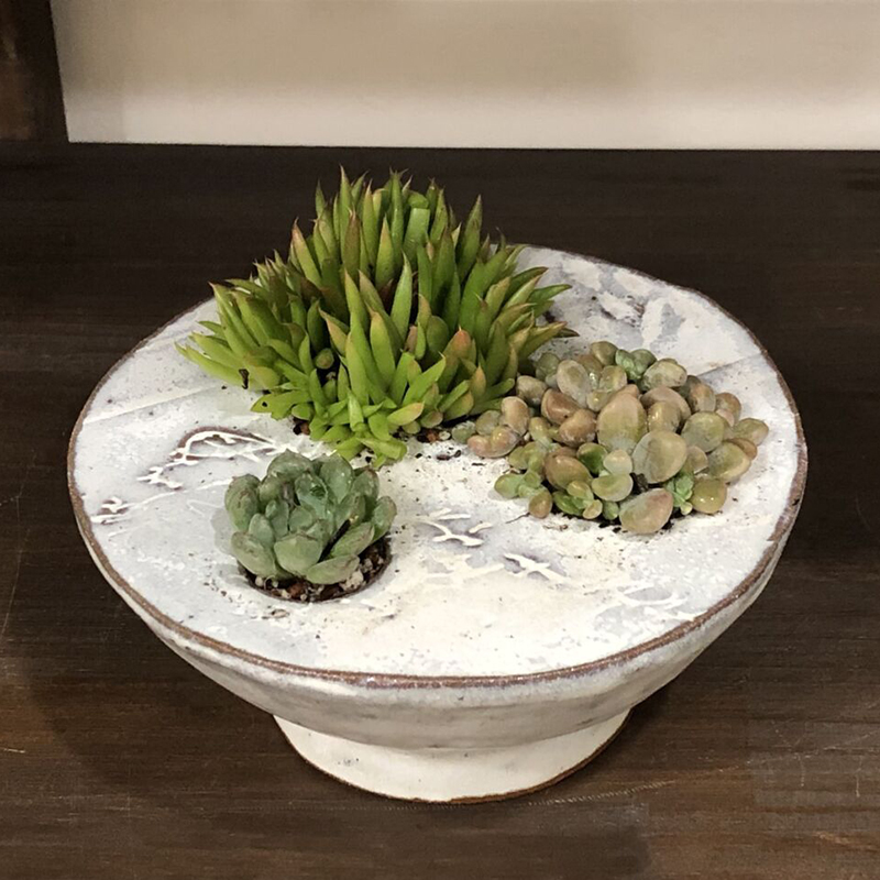 岐阜県関市の小さな工房でガーデニングや生活に彩りを添える陶芸作品、インテリアトールペイントを制作しています。何処にもないユニークで愛らしい多肉植物の鉢を中心に、一点物の食器、花手水大鉢、蚊遣りなどを出品します。トール作品もご一緒に、ぜひ手に取ってご覧下さい。