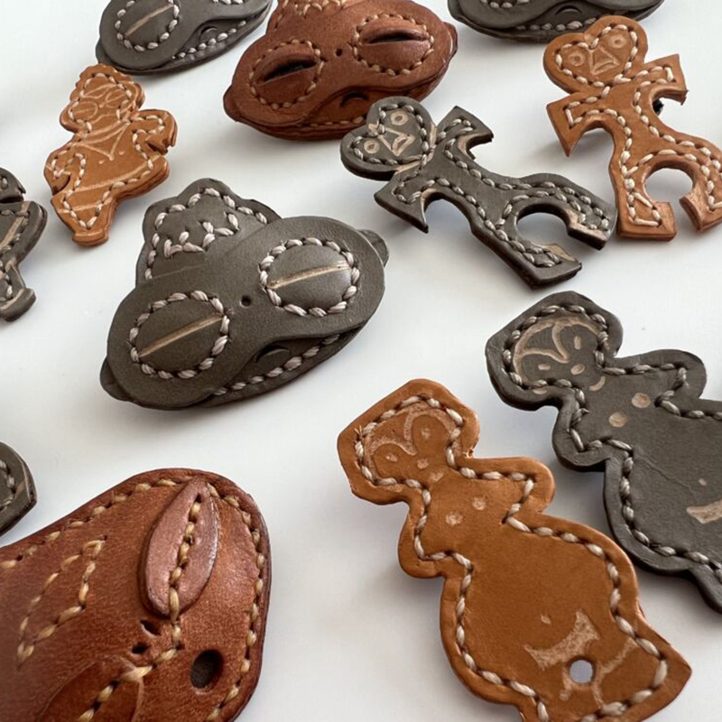 刺し子刺繍はオリジナル柄や、一般の刺し子より細かい柄のアクセサリー、伝統に囚われないカタチの他に無い刺し子を制作。手縫い革はほぼ日本製のヌメ革を使用し、変わった動植物をモチーフに小物を制作。キレイに縫う事にこだわり、縫う事を省かない革作りをしています。お客様に楽しんで頂ける様日々新しいアイデアや、モノ作りが出来るよう精進して参ります。