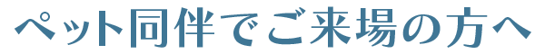 ペット同伴でお越しの際は、原則お車で会場近くの駐車場をご利用いただき、徒歩での来場をお勧めしています。